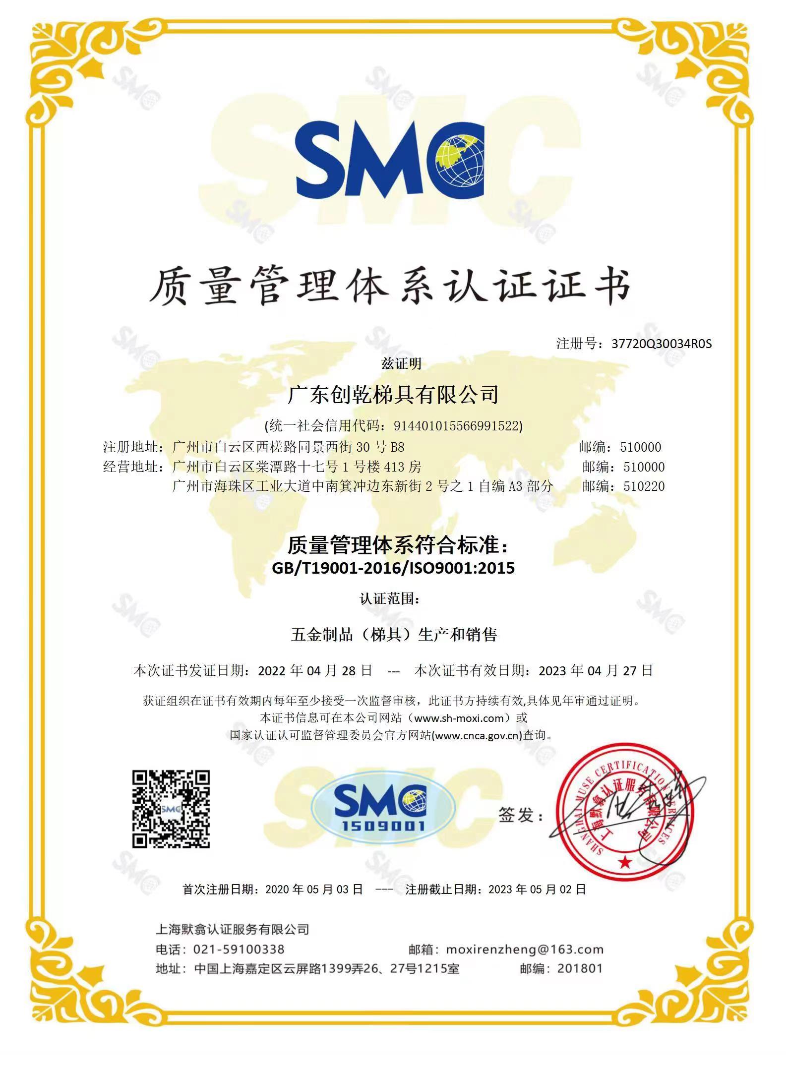 ISO9001質(zhì)量認(rèn)證證書(shū)
