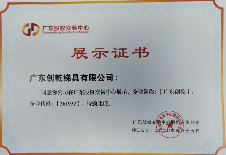 廣東創(chuàng)乾股權(quán)代碼展示證書(shū)