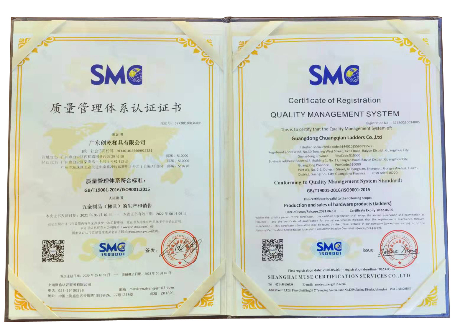 - 質量管理體系認證證書